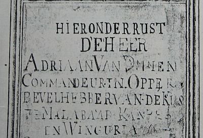 J.J. Cotton mentions in his List of inscriptions on tombs or monuments in Madras Volume I (Revised edition 1945, p. 185) a hefty granite slab (9 feet by 3 ½) located at the entrance of St. Mary's Church in Cape Comorin and originating from an adjacent cemetery. A Dutch factory would previously have been located on the site.